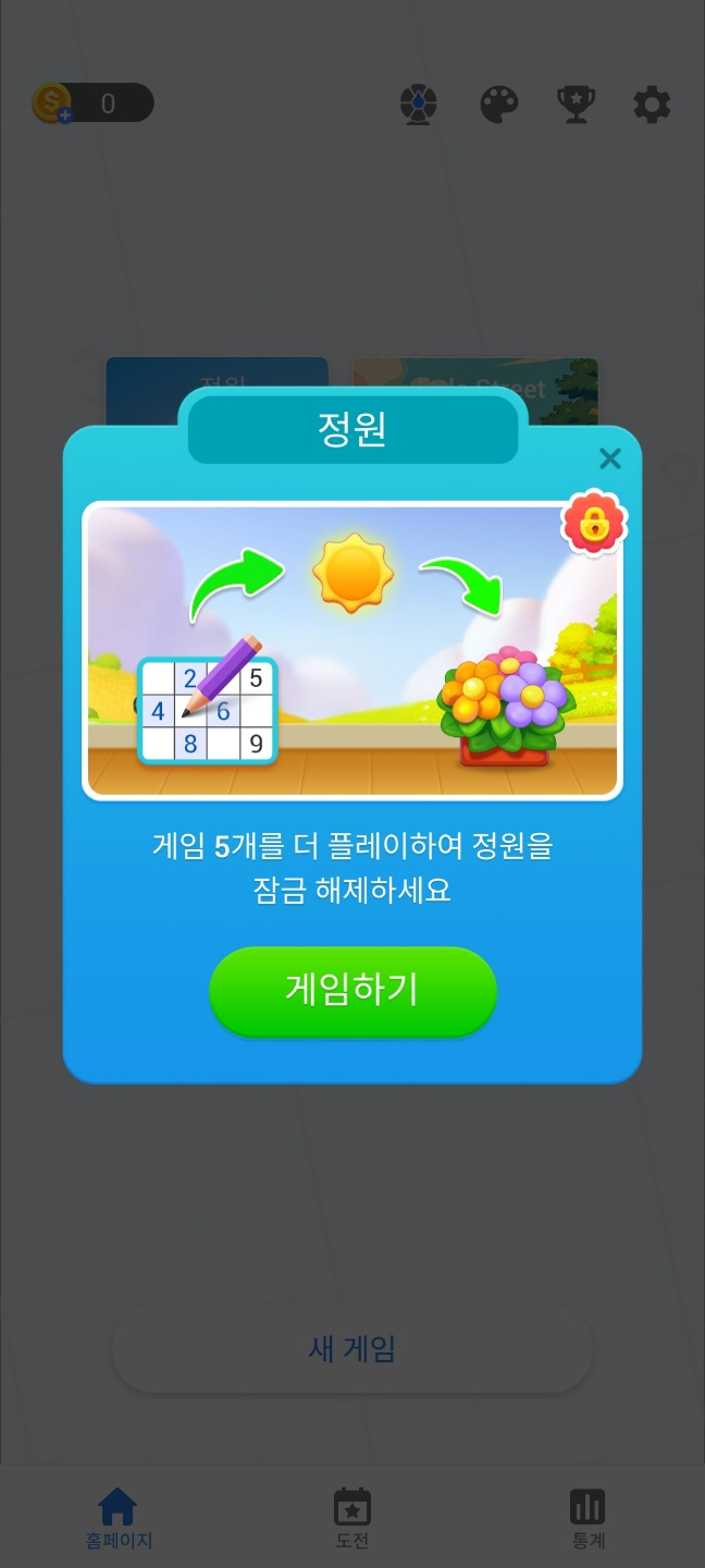 메인에 잠금되어 있는 정원은 게임을 클리어하면 보상을 주는 스테이지입니다.
