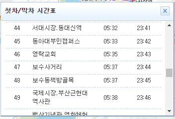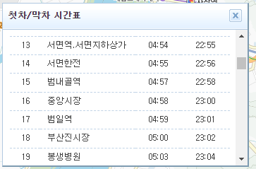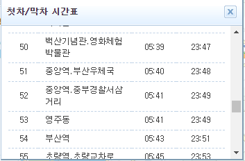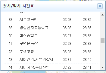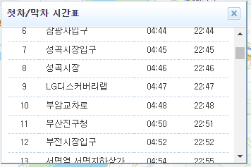 정류소별 첫차와 막차시간은 아래의 정보와 같으니 참고하시기 바랍니다.