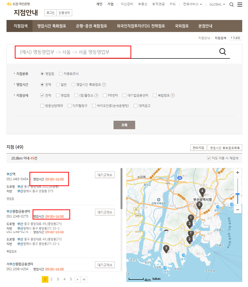 내가 원하는 지점의 영업시간을 정확하게 확인하려면 아래의 지점안내에서 영업점을 입력하면 아래의 사진과 같이 영업시간을 확인할 수 있습니다.
