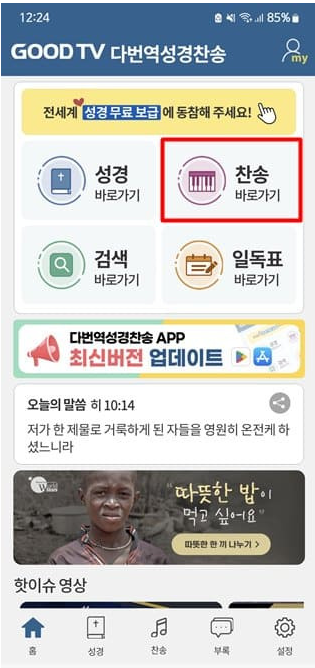 good tv 다번역 성경찬송앱을 이용하면 다양한 성경과 무료 찬송가 듣기를 제공합니다.