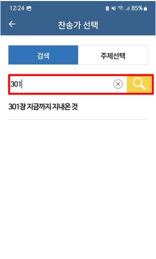 우측 상단의 검색 돋보기 아이콘을 이용하면 원하는 찬송가를 검색할 수도 있습니다.