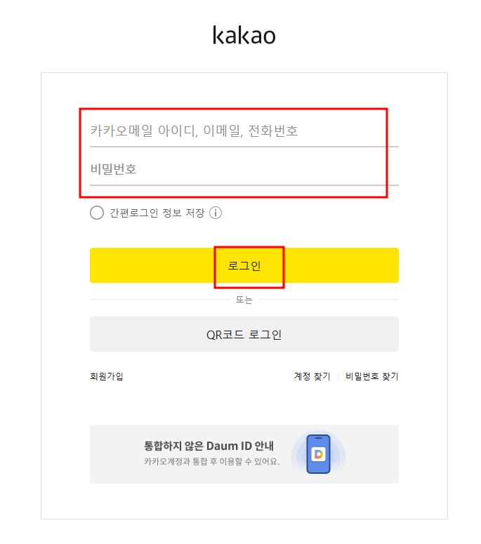 다음 로그인은 카카오 로그인과 통합되어 하나의 계정으로 사용할 수 있습니다.