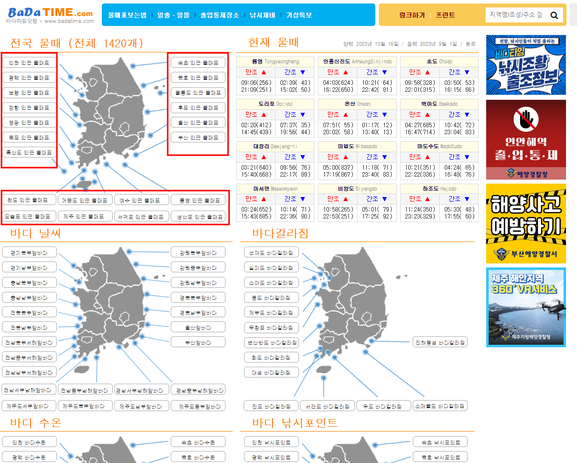 전국 물때표 확인하기