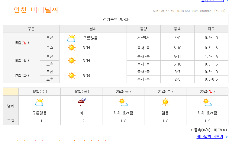 1. 오늘부터 3일간의 바다날씨 정보