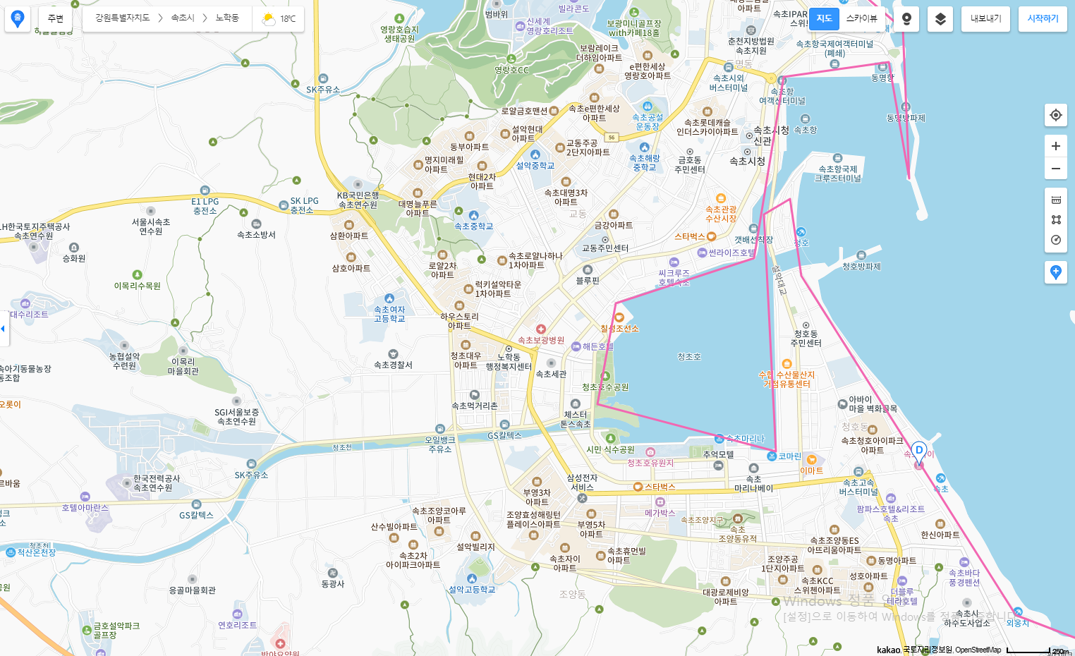 아래의 사진은 속초이며 주변 관광지 및 음식점, 숙박업소 등의 정보를 자세히 조회할 수 있으니 강원도 여행 시 참고하시기 바랍니다.