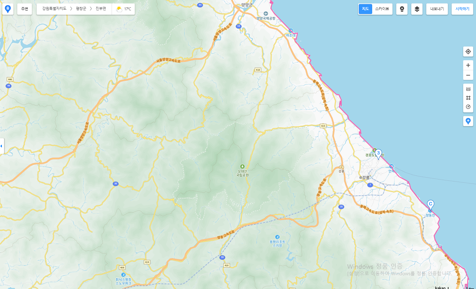 위의 링크를 클릭하면 카카오맵으로 바로 접속됩니다. 카카오맵에서 강원도 지도를 더 크게 확대해서 자세히 볼 수 있습니다.