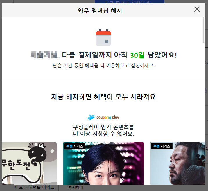 쿠팡 와우 맴버쉽 해지방법